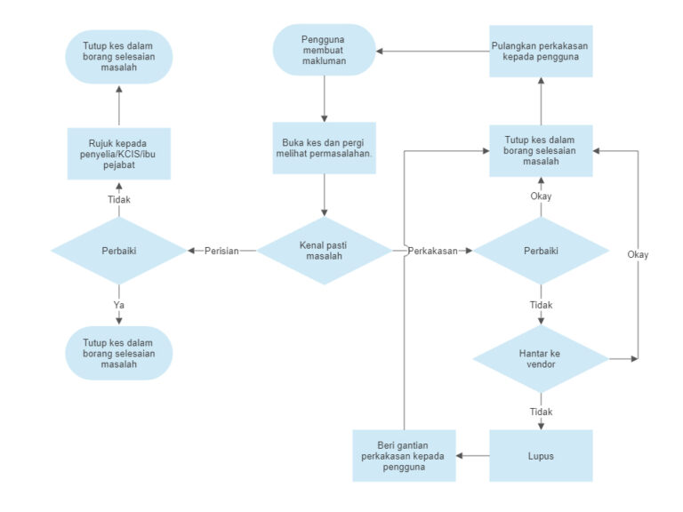 - Untuk sistem yang lain, kes akan dirujuk kepada vendor, atau ke ibu pejabat.