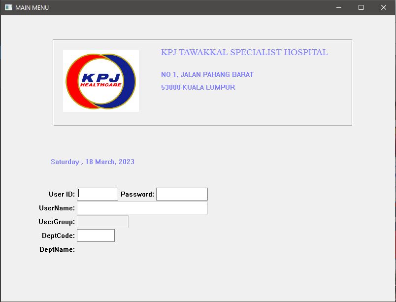 Alamat: Tingkat 11, IT Services, Hospital Pakar Tawakkal, 1 Jalan Pahang Barat, 53000 KL, WP.